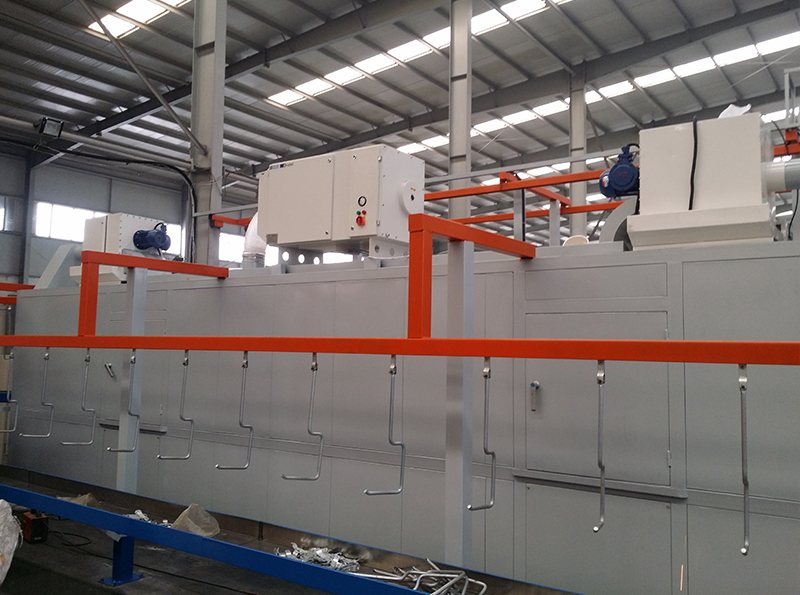 設備由機體、機架、水箱及過濾系統、噴淋系統、吸霧系統、吹水系統、烘干系統、輸送系統、電氣控制系統等組成。