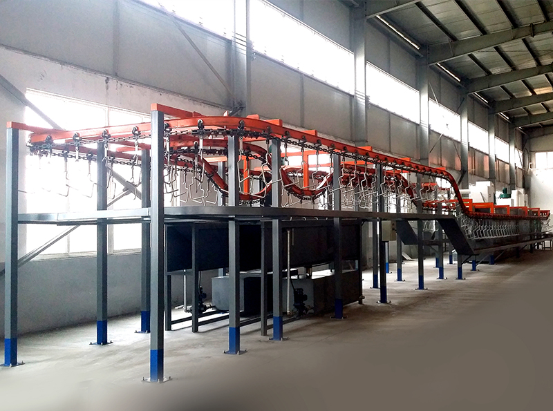 3、輸送系統:考慮到所清洗零件的特殊性,懸掛式清洗機輸送系統采用懸掛輸送形式,選用QXT250型懸掛鏈輸送,工件由人工吊裝于懸掛鏈吊具上,在輸送減速機的驅動下進入清洗等各工藝段,達到邊輸送邊清洗的目的。輸送速度0.15-1.5米/min無級可調。本部分由驅動裝置、懸掛輸送鏈、導軌、支架、吊具、漲緊裝置等組成。
